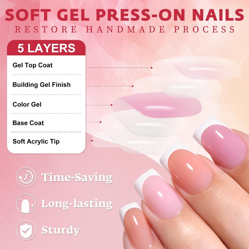 - 【High-quality french tip press on nails】French press on nails are made of soft gel material, and treated with protecting top coat, these french nails press ons are flexible and durable, and the nail tips with thickened front edge ensure your false nails will not break, bend or split