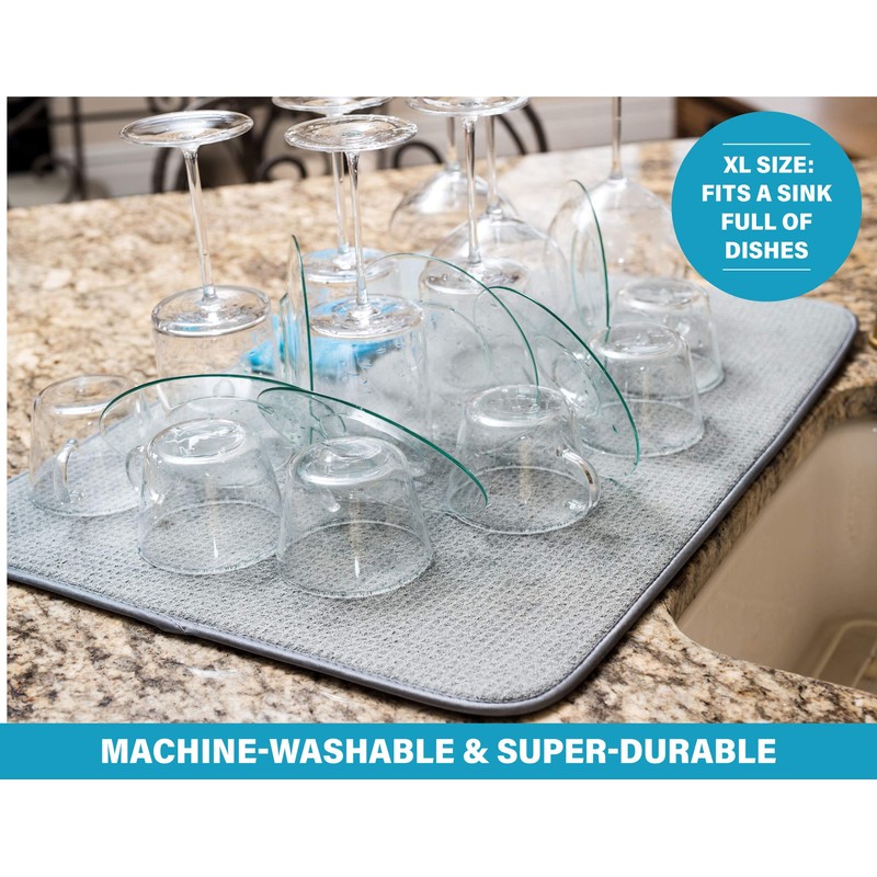 - EASILY FITS A FULL SINK OF KITCHEN DISHES: Most dish-drying mats are too small to hold your big pots and pans and other kitchen decor and accessories. Bellemain's extra-large drying mat for kitchen counter is designed to take up nearly 40% more space than the typical dish drying rack.