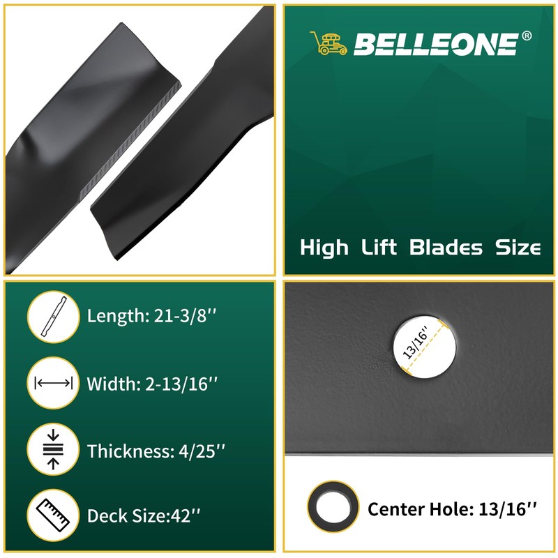 Belleone UC22008 Mower Blade Compatible with John Dee re 42" Mower Deck, Fit for John Dee reZ315E Z320M Z320R Z335E Z335M Z345M Z345R X330 X350 X354 X370, Replace M170642, 2 Pack