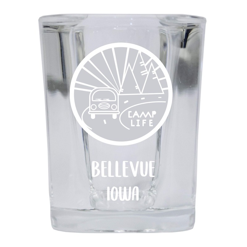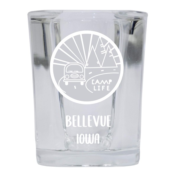 Bellevue Iowa Souvenir Laser Engraved 2 Ounce Square Base Liquor Shot Glass 4-Pack Camp Life Design