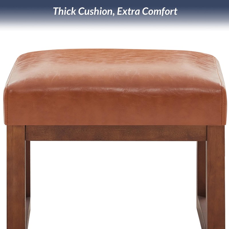 BELLEZE 19 Inch Wide Ottoman Foot Rest, Rectangle Foot Stools with Solid Wood Base and Linen Padded Seat, Stable Footstool for Living Room, Bedroom - Caramel