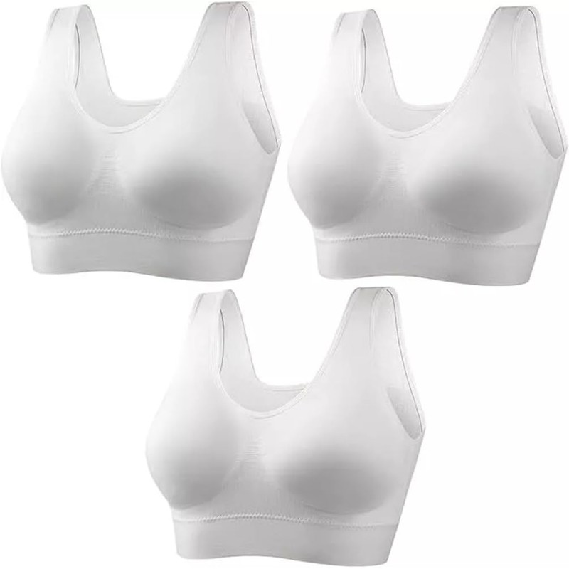 BELLEZZA BABE Women 3 Pack Seamless Sports Bra Wireless Bra Without Pading Comfort Yoga Bralette for Running Sports Fitness (UK, Alpha, XL, Regular, Regular, 3 White)