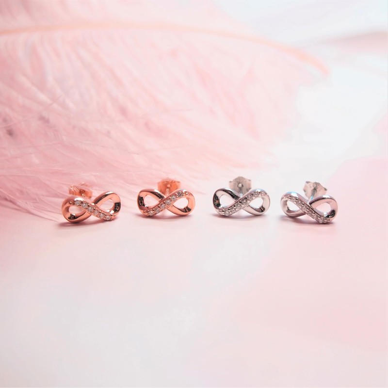 Bellitia Jewelry Infinity Stud Earrings for Women Girls Made of Real 925 Sterling Silver Platinum Plated / Rose Gold-Plated Infinity Earrings Hypoallergenic with Zirconia, Sterling Silver, Cubic