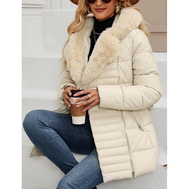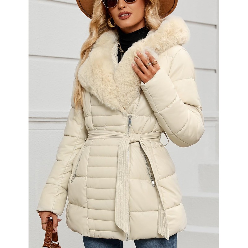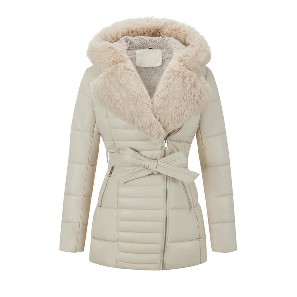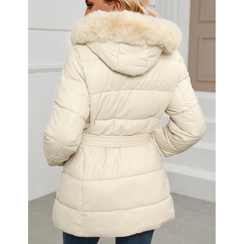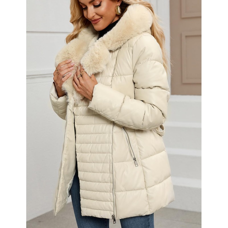 - Trendy and Chic Exterior: Our puffer coat boast a stylish faux leather shell that exudes a trendy and chic vibe. Winter jackets for women feature an adjustable waist belt that allows you to tailor the fit to your liking, accentuating your waistline and creating a flattering silhouette that exudes confidence and style. ensuring you stand out with fashion-forward flair