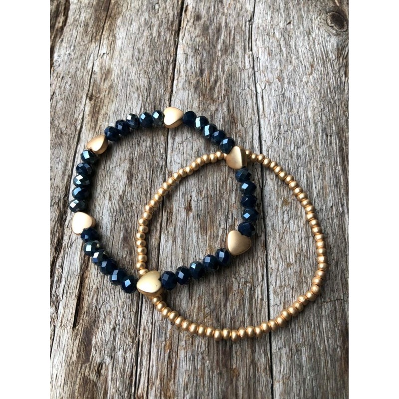 - Set of two Bracelets - matt gold plated hearts and navy blue beads - one size