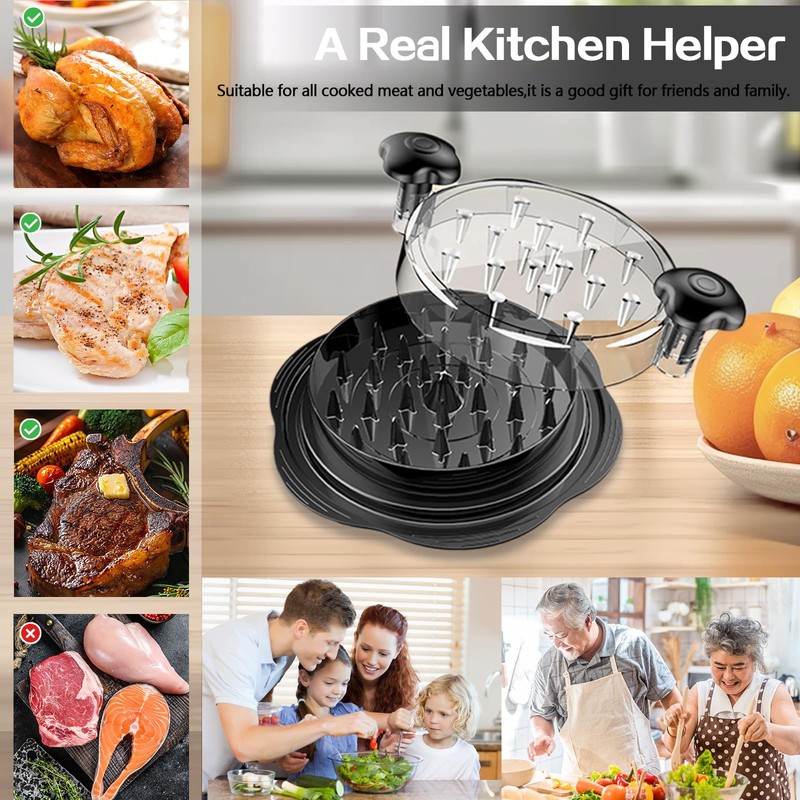 - Utility Design:The meat grinder has a unique design with built-in plastic teeth that cover the entire area to hold food tightly, and extra spikes on the edges of the chicken shredder twist lid to gather the shredded meat in the center for even shredding, and this latest structural design of chicken shredded tool twister greatly improves cooking efficiency