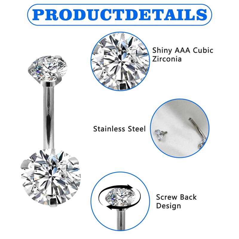 - High-Quality Material: In order to ensure your comfort and health, our belly button ring is made of high-quality stainless steel, which is safe and non-toxic and has excellent corrosion resistance and wear resistance. The unique craftsmanship makes belly bars sterling silver more shiny and dazzling, always showing off your charming style.