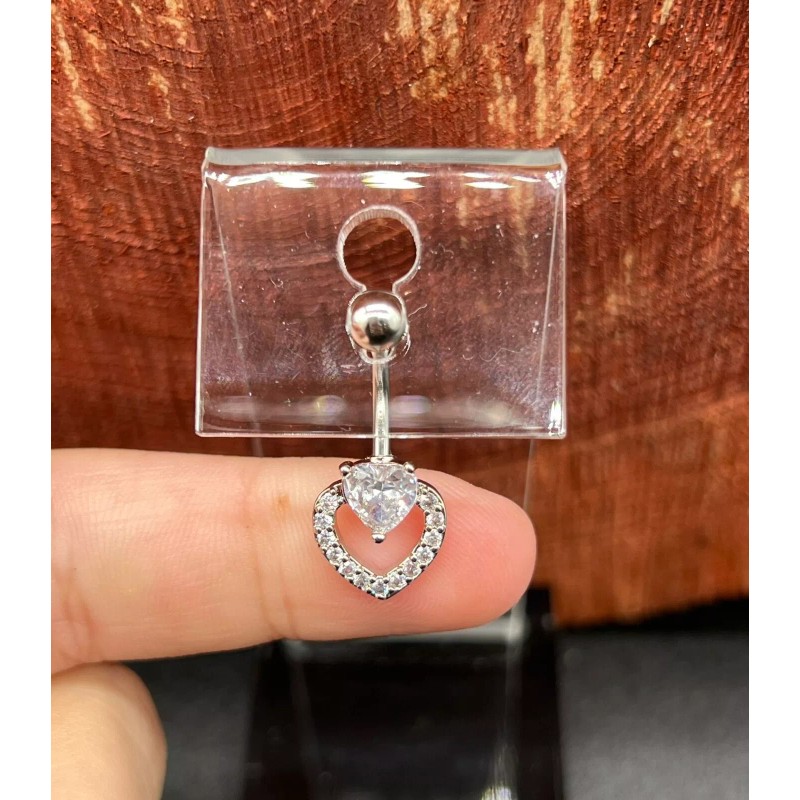 - This 14-gauge double heart belly button ring beautifully combines romance and sparkle. Crafted from durable stainless steel, it features two intertwined heart-shaped designs. Both hearts are adorned with sparkling cubic zirconia stones, which catch and reflect light, adding a dazzling effect. The stainless steel ensures long-lasting wear and a comfortable fit, making this piece both elegant and practical. Perfect for those who love classic, romantic jewelry, this belly button ring adds a touch of sophisticated charm to your body piercing.
