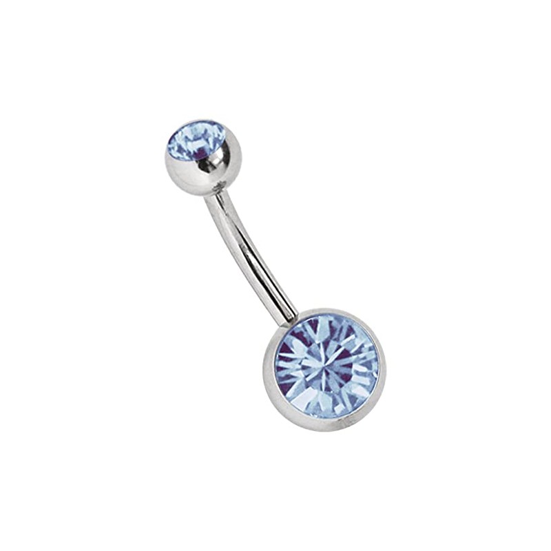 Bellybutton Piercing, 1.6 x 8 mm, Titanium with 8 and 5 mm Round Clear Cubic Zirconia Stones, Various Colour, Titanium, light blue