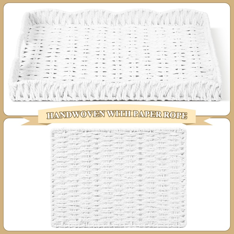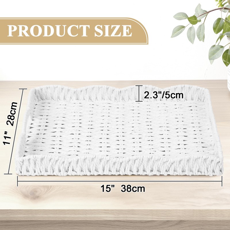 - 100% RECYCLABLE MATERIALS: Made from recycled paper ropes, and built-in sturdy iron frames, the scalloped tray are designed with a sustainable purpose and are also sturdy to use. The neutral color makes these rectangle tray for organizing matches with any interior style.