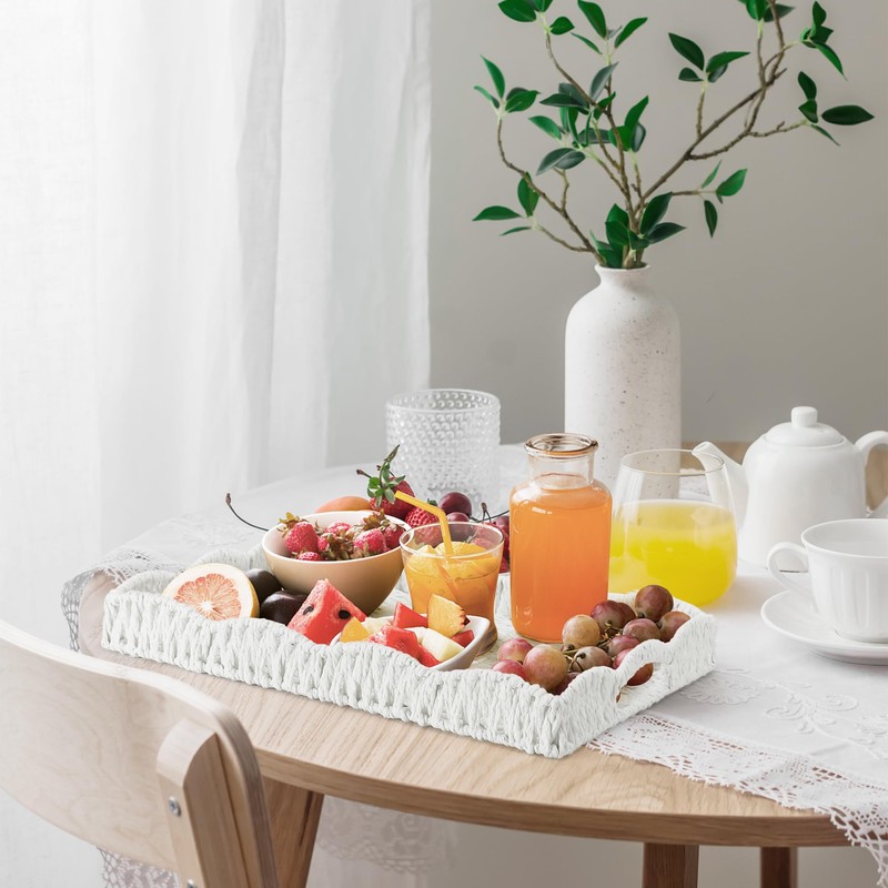 - HANDWOVEN TRAY: Handmade by skillful craftsmen, the scalloped rectangle tray is lightweight yet durable, combining practicality and decoration, the tray will add a natural feeling and rustic charms to your living spaces. Easy to clean, just need wipe clean with dry cloth or use a soft brush.