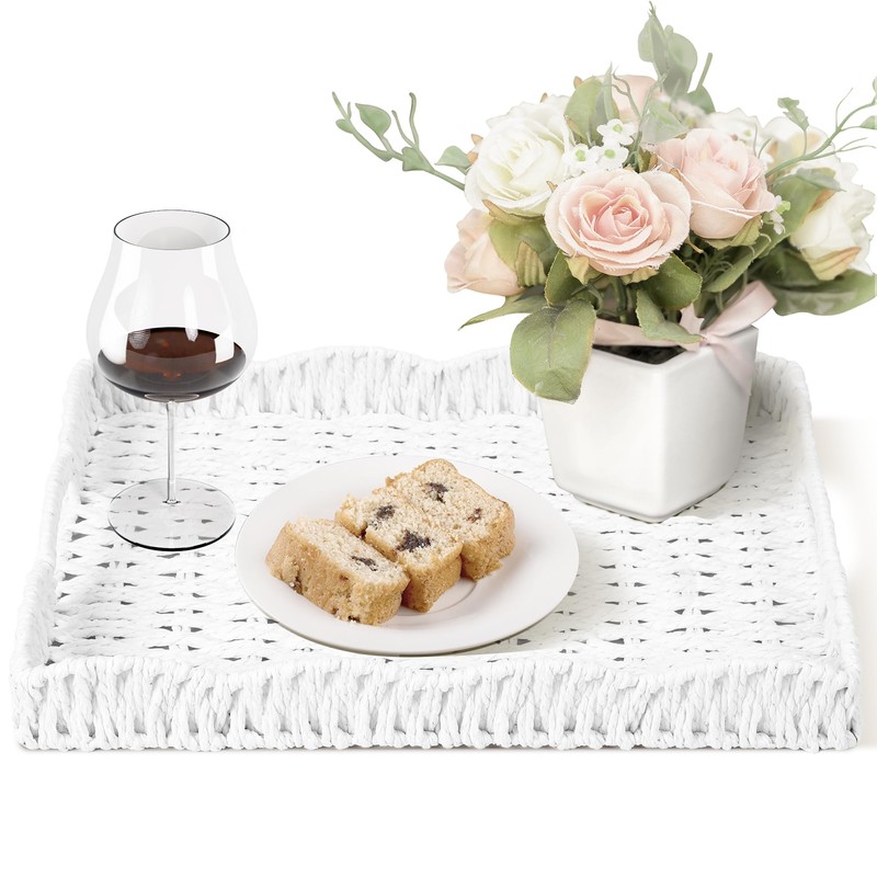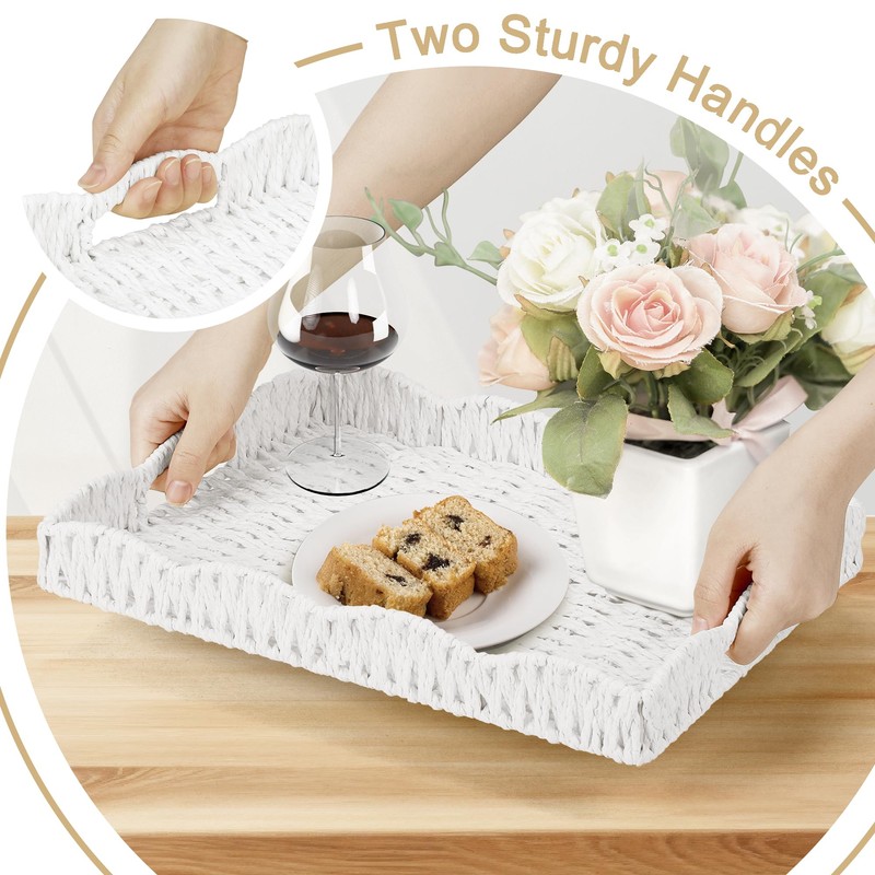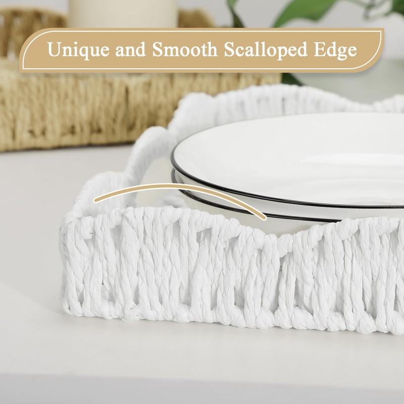 - SCALLOPED EDGE DESIGN: This rectangle serving tray features scalloped edges, each tray is in a succinct finish of tightly woven for a touch of whimsy. Meanwhile, the built-in wire construction ensures the stability of the tray.