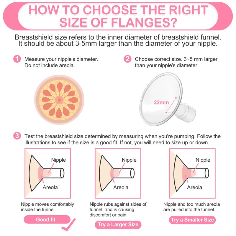 - Gran solución para madres de pezón pequeño que utilizan bombas Spectra y Medela Freestyle, Harmony, Sonata y Swing-Maxi, el ajuste adecuado del túnel de pezón es esencial para la comodidad y la producción eficiente de leche.