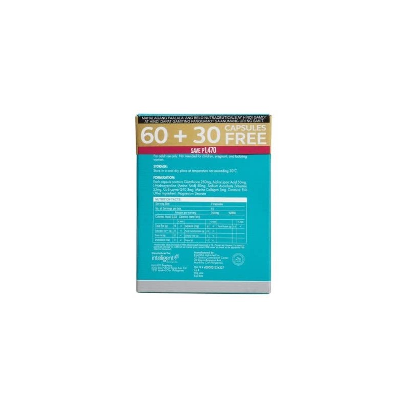 Belo Nutraceuticals Glutathione + Collagen Dietary Supplement - 60 Count - New!!