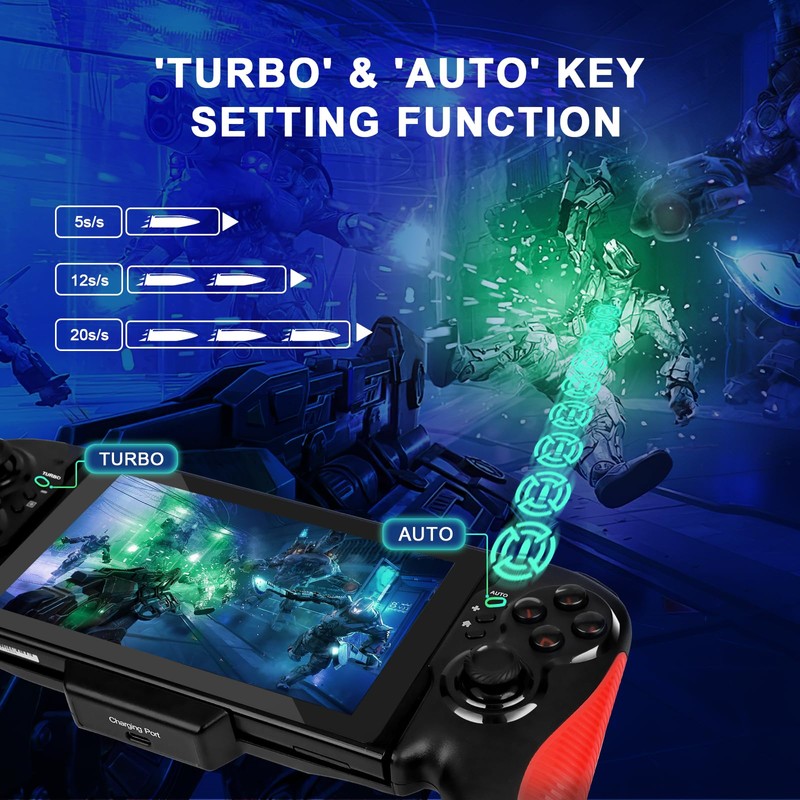 - Ergonomic Design: The grip is made of high-quality ABS material and surface has anti-slip texture .The integrated handle and ergonomic design eliminate hand fatigue. the Full-Size Grip Switch Controller is more suitable for long time playing.