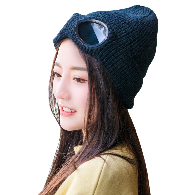 Belsen Unisex Goggle Knitted Beanie Hat Windproof Warm Winter Skull Cap (Black)