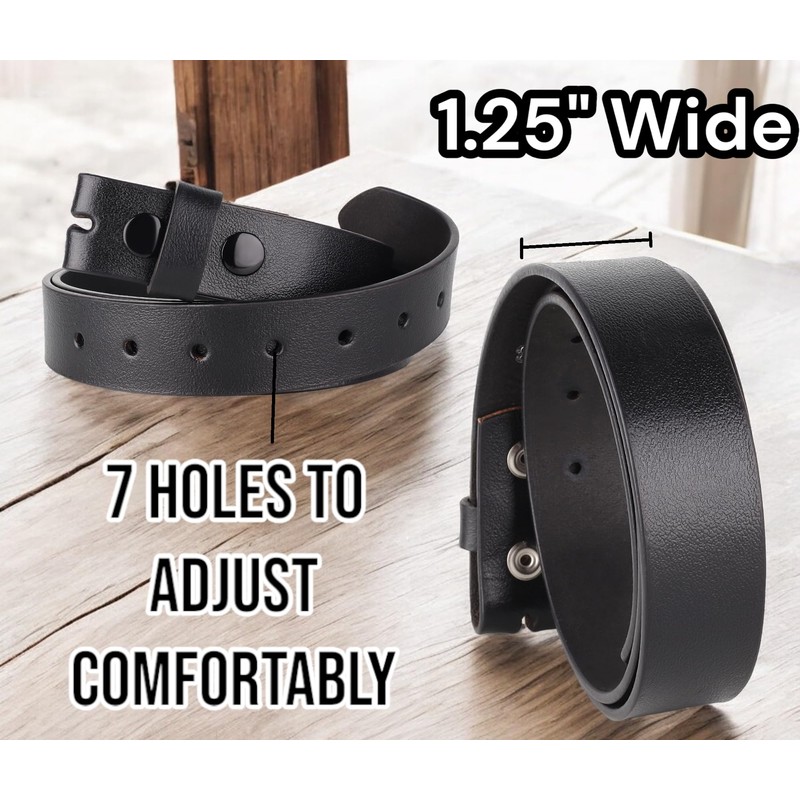 Belt for Buckles 100% Full Grain One Piece Leather Belt, w/Snaps for Interchangeable Buckles,1.25" wide,Classic Black,1043-07,Size 32