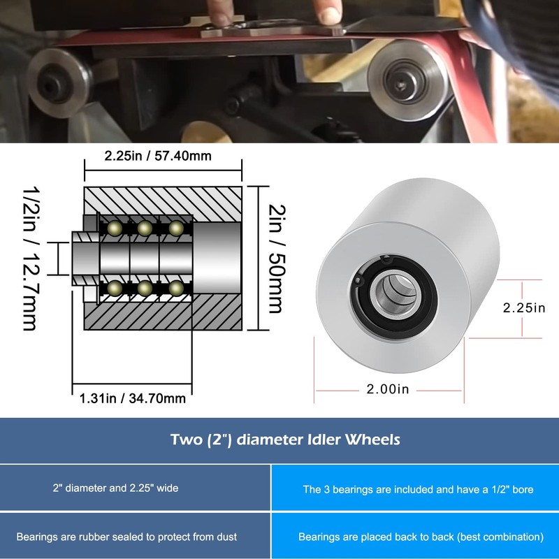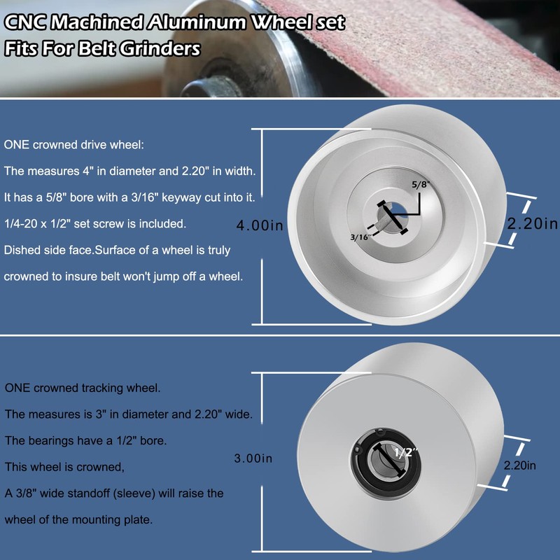 For CNC Machined Aluminum Wheel set for 2”x72” Belt Grinders.It is widely used in parts factories, building materials factories, etc.Great for tool polishing and grinding metals, acrylic, wood and other materials.