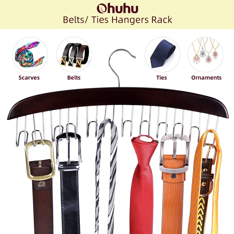 - BELTS, TIES, AND MORE: The Ohuhu Belt Hanger is for so much more than just belts, it's also great for ties, purses, scarves, necklaces, and other accessories.