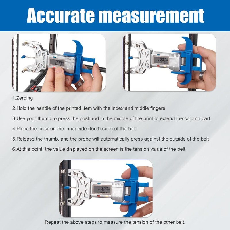 - ACCURATE MEASUREMENT: Specially designed for belt tension in 3D printers, the gauge allows accurate measurements on all belts. This makes settings easier and smoother.