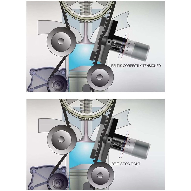 - HIGH PERFORMANCE It can measure the tension that the timing belt needs to press down, allowing you to adjust the position of the timing belt tensioner to an accurate position. Speed up the assembly process of the timing belt so that your belt does not shake because it is too loose, or makes unusual noise when it is too tight.