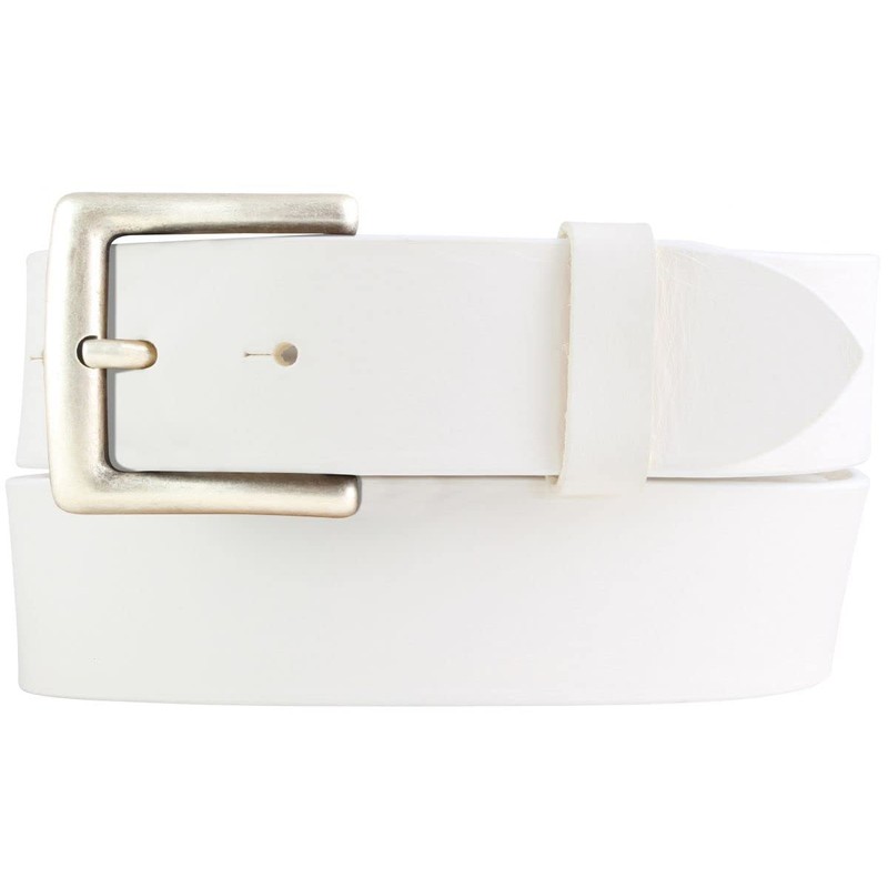 BELTINGER Denim Belt Made of Full Cowhide Leather with Antique Silver Belt Buckle 4 cm Jeans Belt for Men and Women 40 mm Leather Belt, White, antique silver