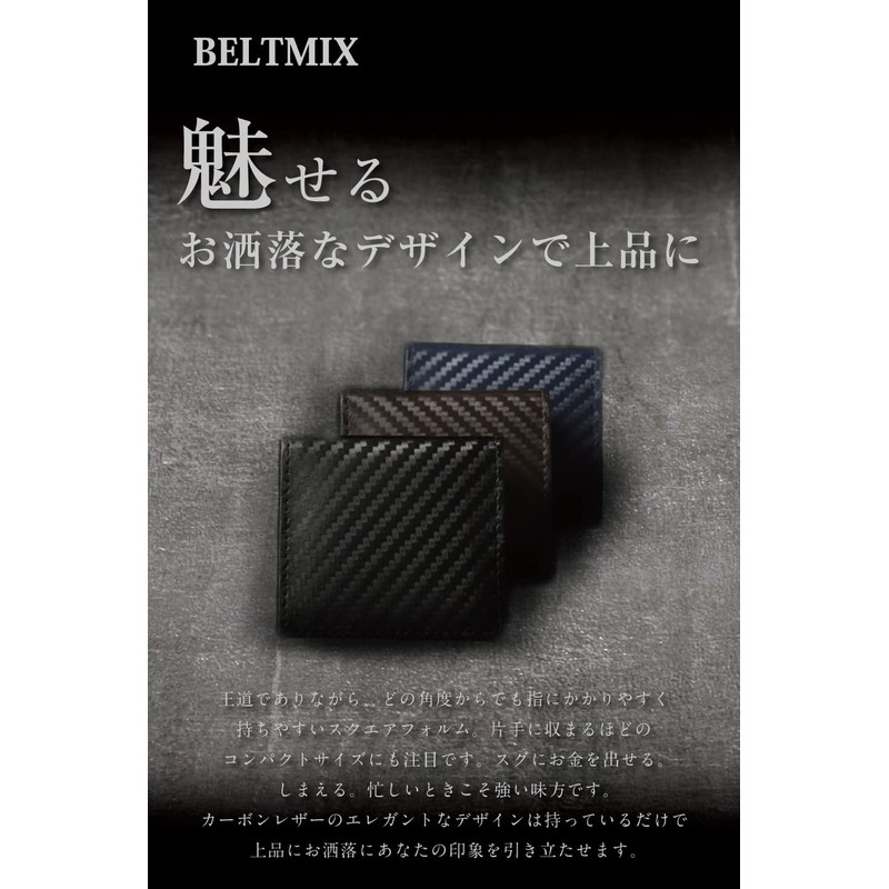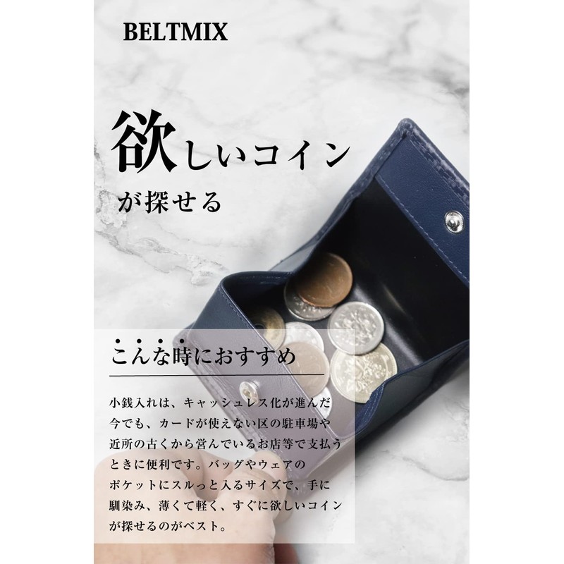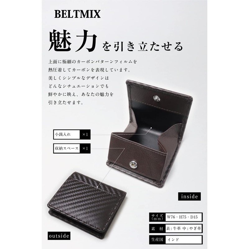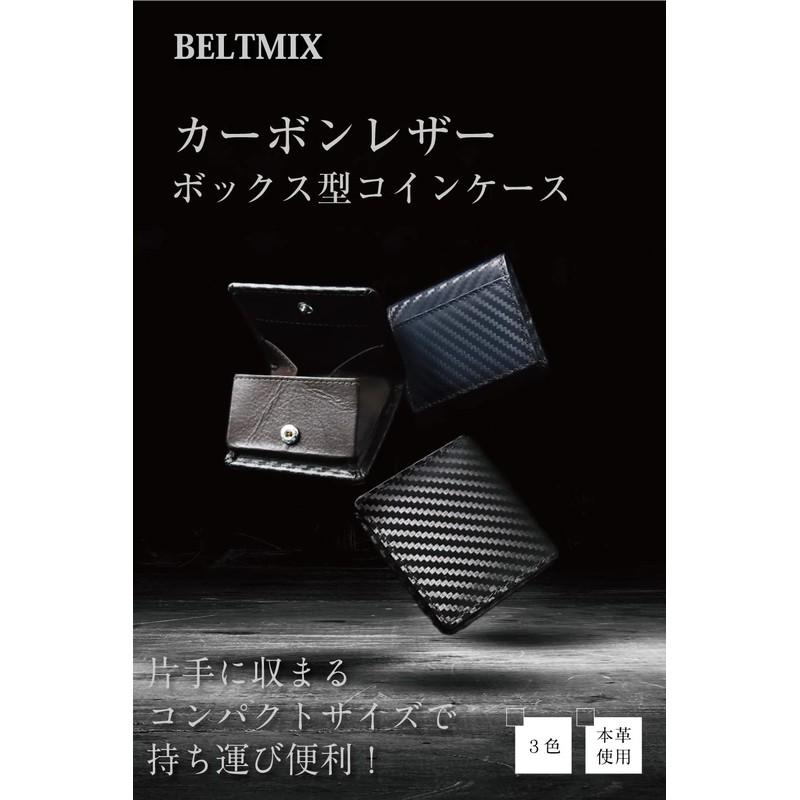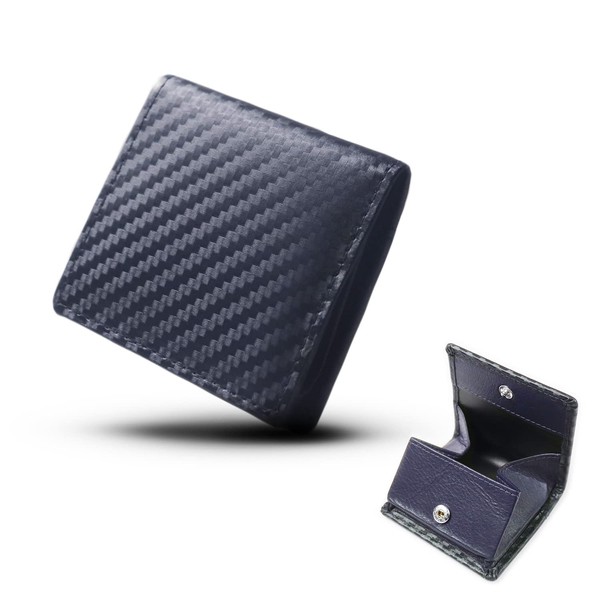 BELTMIX Coin Purse, Men's, Genuine Leather, Carbon Leather, Box-shaped, Coin Case, Thin, Compact Size, Gentlemen, Business, NAVY