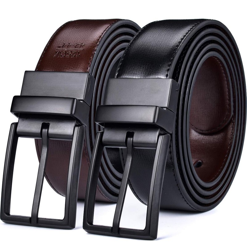 beltox fine Men's Dress Belt Leather Reversible 1.25" Wide Rotated Buckle Gift Box(Black/Brown Belt with 0440 Black Buckle,48-50)