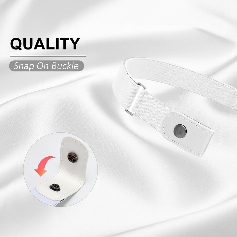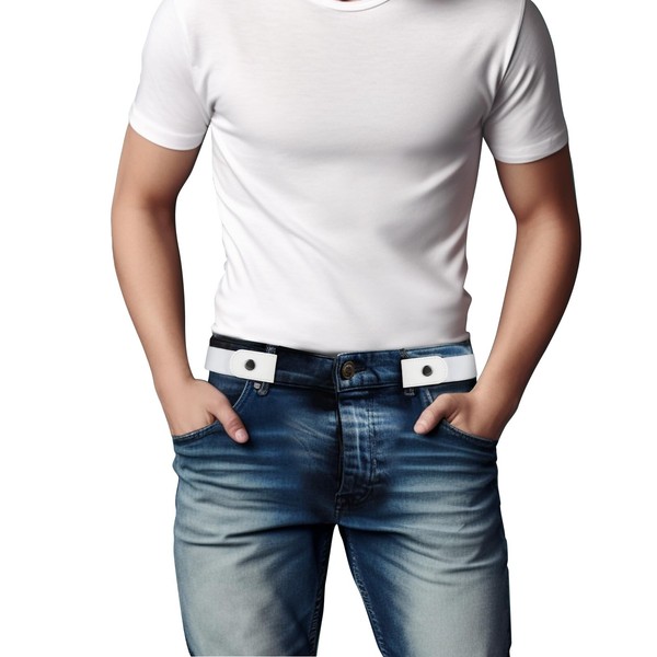BELTROAD - Cinturón elástico sin hebilla para hombres, cinturón elástico invisible sin hebilla para hombres y mujeres, Correa blanca plateada, S for Pants 22"-34"