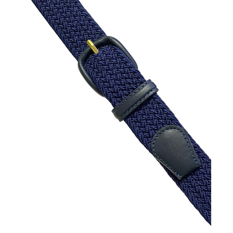 Belts.com Leather Covered Buckle Woven Elastic Stretch Belt, Navy, (S(32"-34")