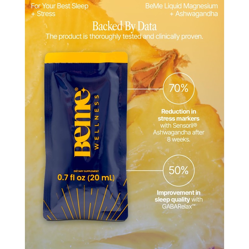 BeMe BeZen Sleep Aid Supplement Natural Without Melatonin - 2X Absorption Than Pills - Sleep aids for Adults with Magnesium, Ashwagandha, Chamomile, L-Theanine & GABA - Delicious Pineapple