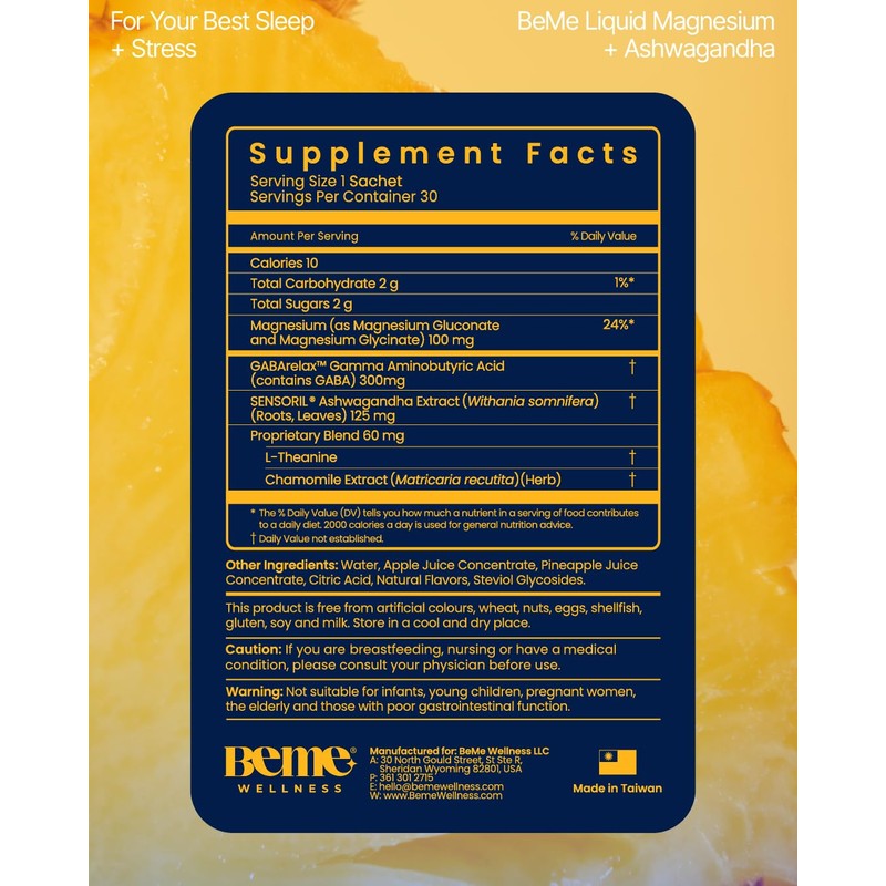 • Convenient On-the-Go Liquid Sachets: No pills or powders—Be Zen comes in easy-to-use liquid sachets with a refreshing natural pineapple flavor, perfect for supporting your wellness routine anywhere.