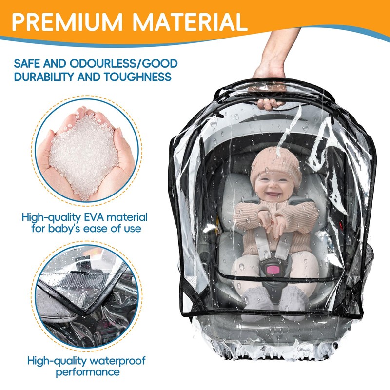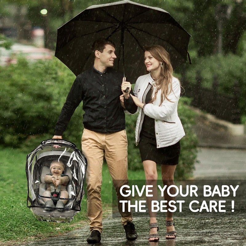 - All-Around Protection: This Car Seat Rain Cover provides full coverage for the baby seat, shielding your child from harsh weather conditions. It features windproof, rainproof, snowproof, and dustproof functions. The front window can be opened and closed at any time, making it easy to get in and out with a baby in your arms