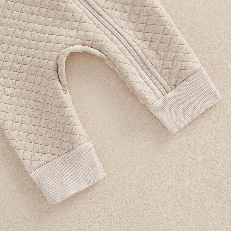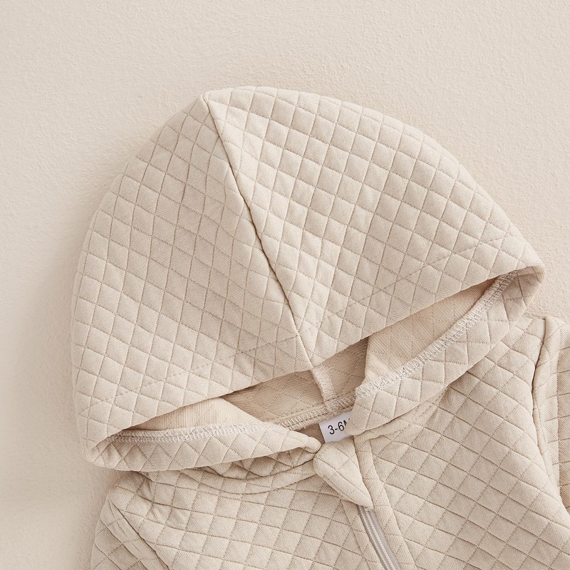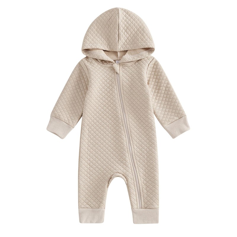 Baby Boys Girls Hooded Jumpsuits Long Sleeve Quilted Zip Up Rompers Newborn Pajamas