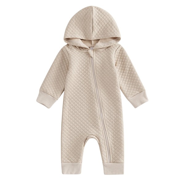 BemeyourBBs Newborn Baby Boy Girl Fall Winter Clothes Zipper Hooded Romper Cute Long Sleeve Jumpsuit Warm One Piece Outfit (Solid Beige, 9-12 Months)