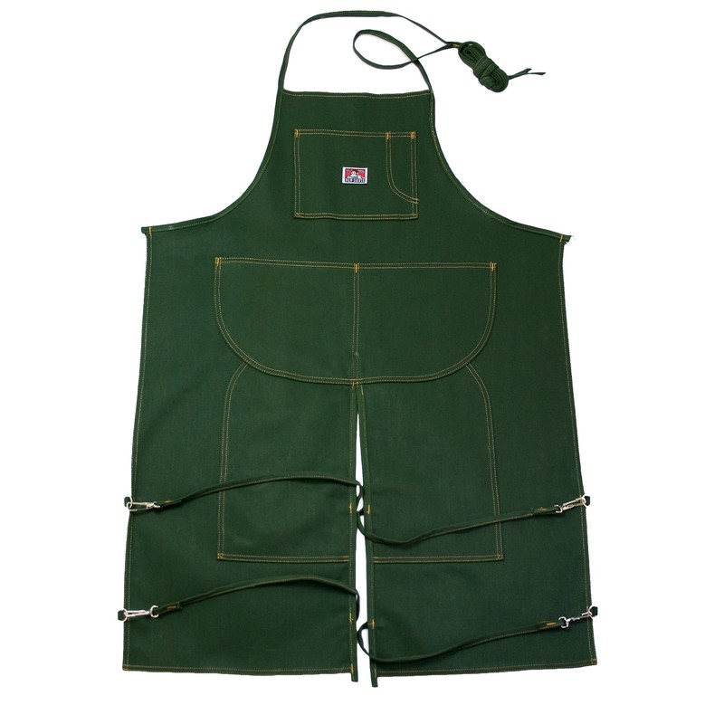 When it's time to roll up your sleeves and get to work, it's time to grab this teamster's apron. The heavyweight poly-cotton blend will keep the clothes underneath looking presentable and free from spills, smears, and dust. There are plenty of pockets to hold essentials under the watchful eye of the Ben Davis gorilla logo, and leg straps keep the skirt in check when needed. When you don this apron, you'll be part of Ben Davis's 70-year tradition of hard- working work clothes, even though you're working on cutting-edge design.