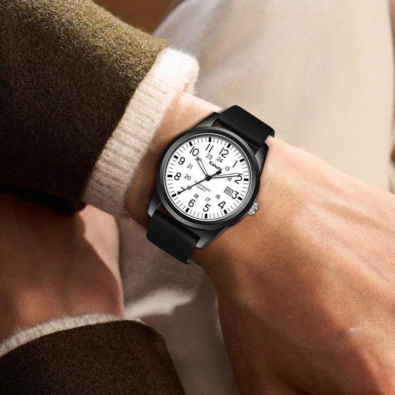 • Easy to Read Watch: Large 24 hour numbers and calendar window, three-hand clock makes it easy to read the time. Classic design and comfort is suitable for outdoor, everyday fashion and outfit