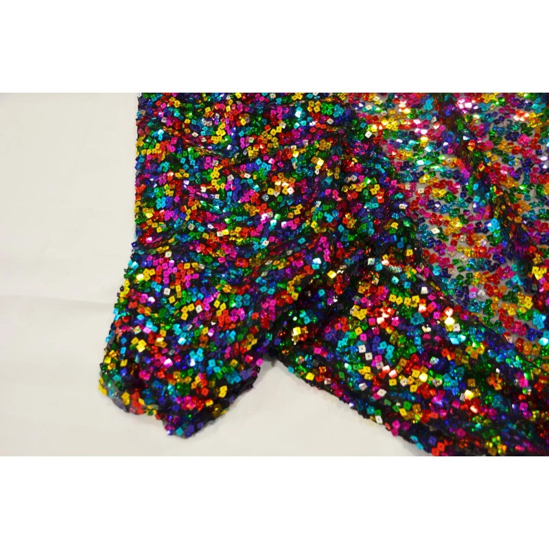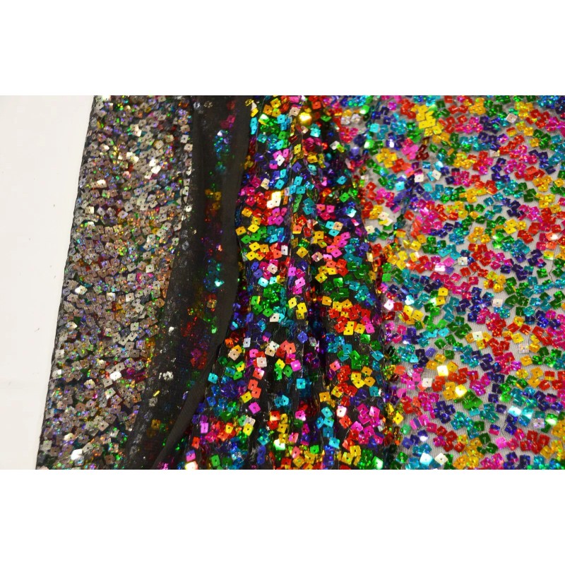 BEN TEXTILES INC Rainbow Square Sequins Fabric by the yard | Colorful Sequins Fabric | 52" |