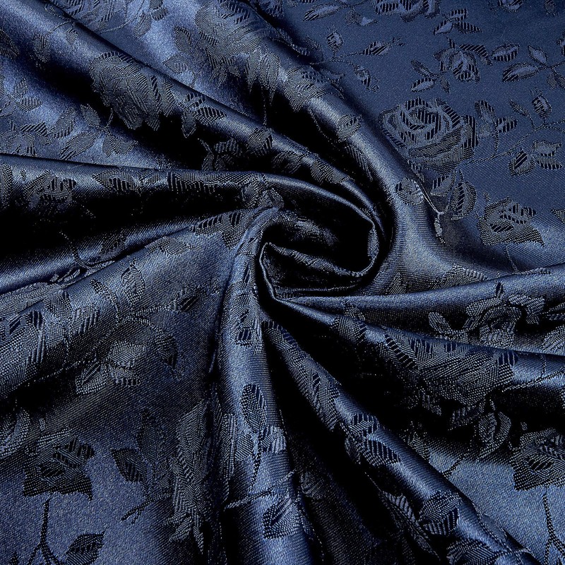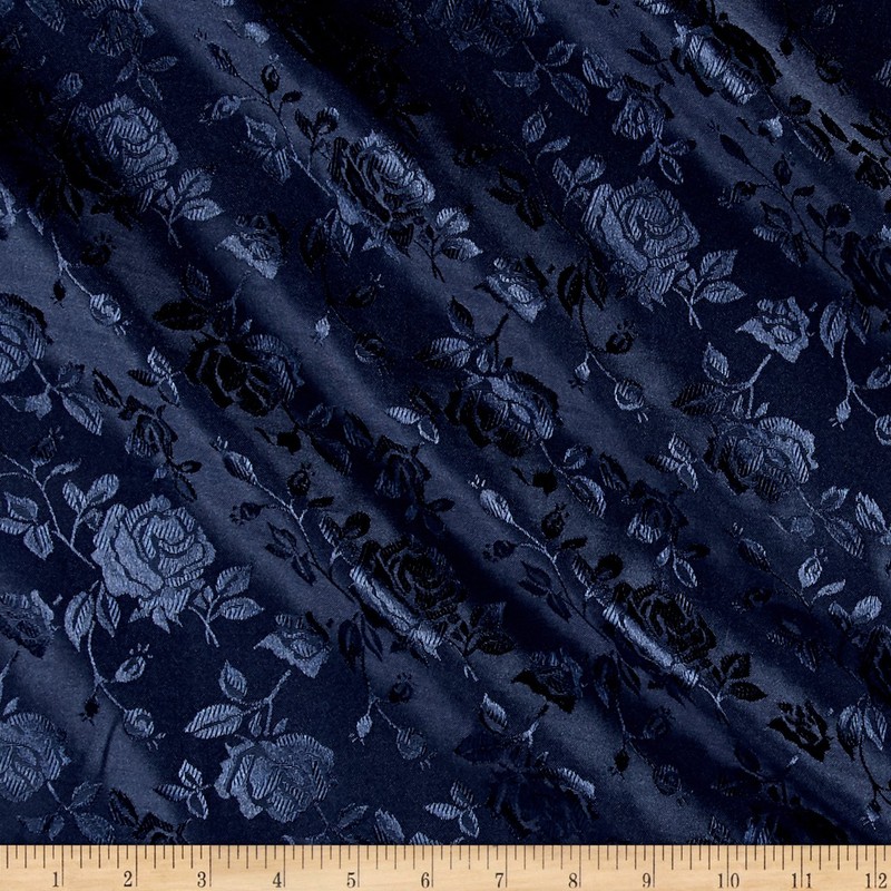 Ben Textiles Rose Satin Jaquard Navy Fabric By The Yard