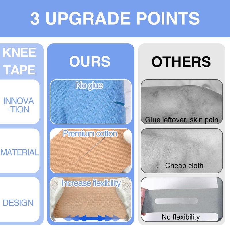- Targeted Pain Relief: The therapeutic tape design helps reduce knee discomfort by supporting muscles and joints while improving blood circulation, ideal for arthritis, injuries, or post-workout recovery