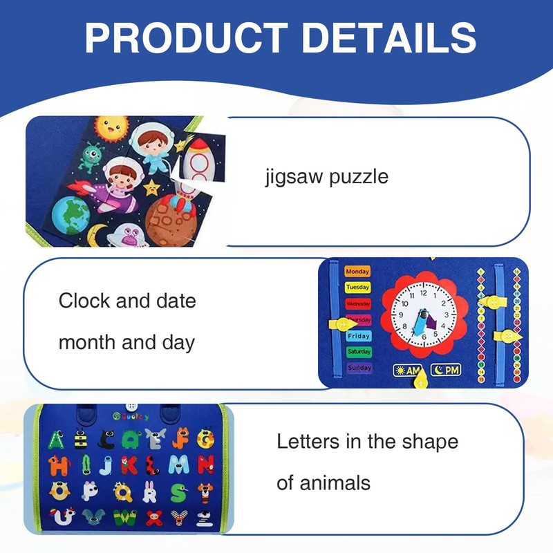 - Safe and Durable: Made from high-quality, non-toxic materials, this busy board is built to last and is safe for little hands. Its sturdy construction ensures it can withstand the enthusiastic play of curious toddlers