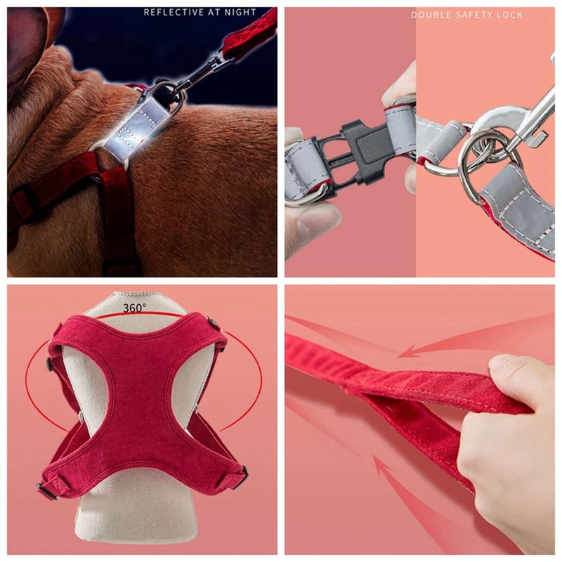 - SUPER COMFY EASY TO USE --- Soft breathable velvet is gentle and skin-friendly,perfect for pet owners looking for convenience and ease of use. step-in design makes it easy to put on or take off just a few steps. Put the dog's front feet into the holes, then snap the buckle, attach the leash to D-rings, finished. it's suit for daily walks and outdoor activities such as jogging or training, keep your baby cool and comfortable thanks to its lightweight and soft construction