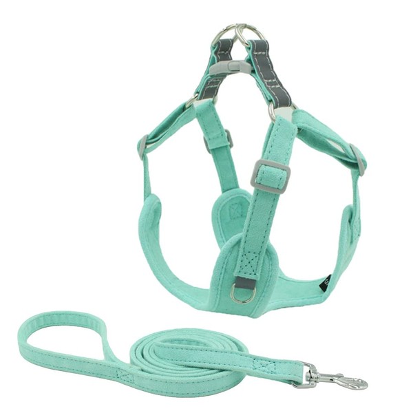 Benala No Pull Dog Harness Leash Reflective- Velvet Pet Harness Comfortable Adjustable Control - Step-in Walk Running DOD Cat Harness Set,Green,M