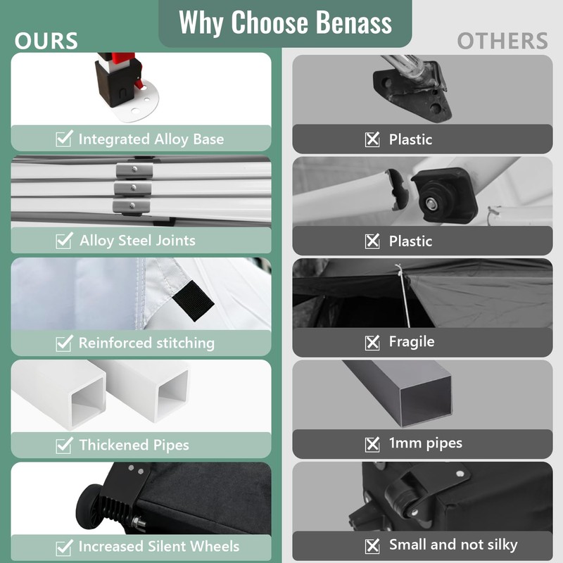 • Warranty - We offer one year 100% of satisfactory after sales service. If there are any problems when you receive the canopy or in use, Benass will serve you asap
