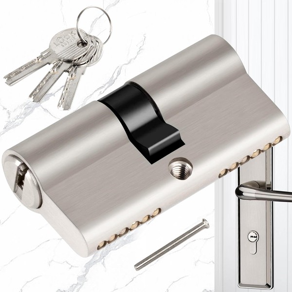 Benaton Profile Cylinder Double Cylinder Lock Cylinder, 70 mm European Brass Cylinder Lock, Euro Door Lock with 3 Keys, 70 x 29 mm Satin Nickel Cylinder Lock, Security Lock Front Door