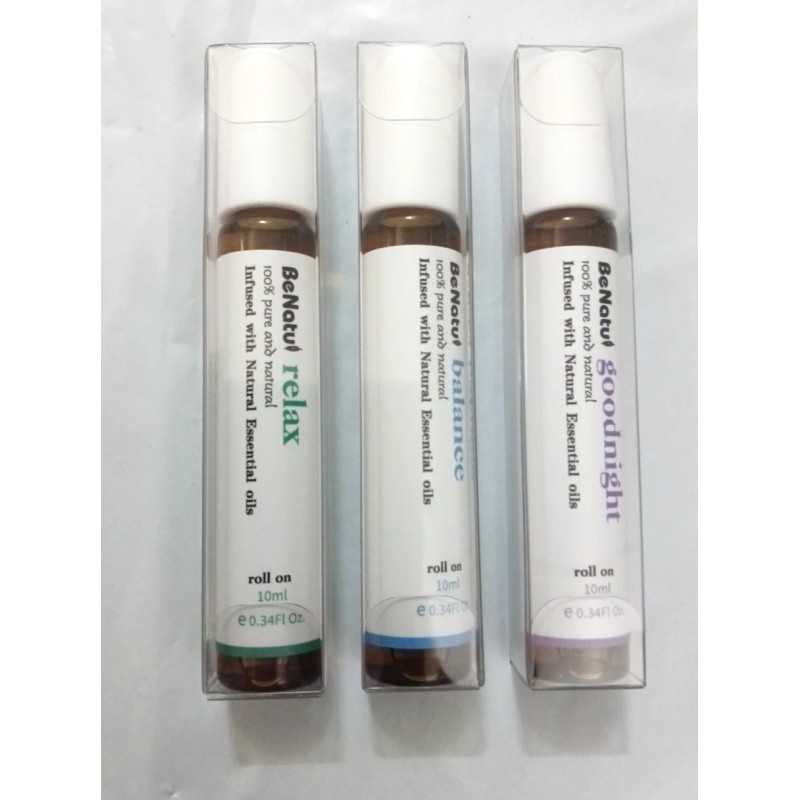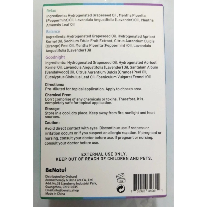 Benatu Essential Oils 3 piece roll on Set. Relax, Goodnight, Balance 0.34 Fl Oz.