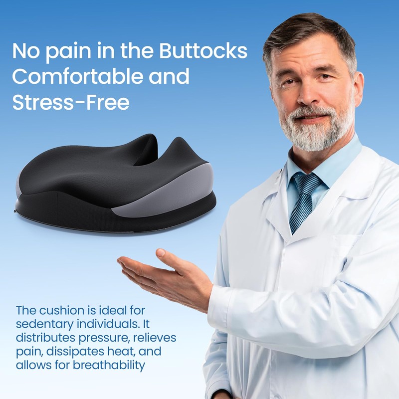 Benazcap Large Seat Cushion for Office Chair Memory Foam Coccyx Pain Relief Cushion Pillow for Back Support Non-Slip Seat Pad