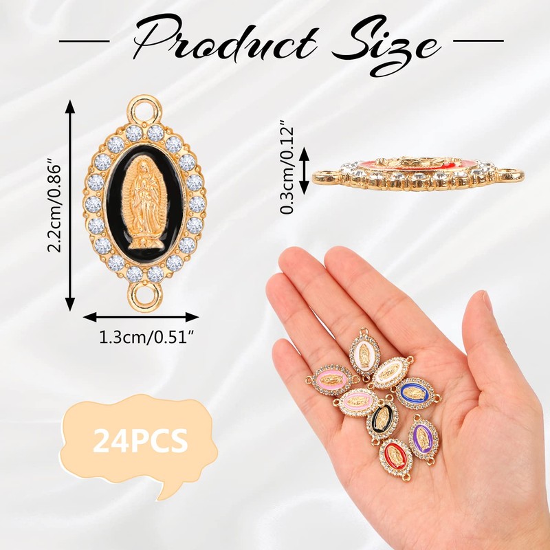 BENBO 36Pcs Alloy Enamel Virgin Mary Charms, Mix Color Enamel Inlay Rhinestones Our Lady Link Miraculous Medal Floral Rosary Centerpiece Crucifix Connection with Box
