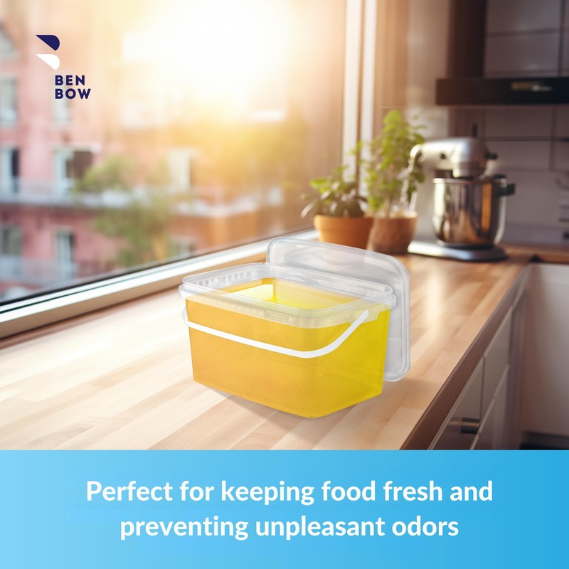 • Safe food storage - the rectangular and odourless BenBow bucket with 5 liters capacity and practical handle is an essential tool for hygienic and airtight food storage in homes, restaurants, and the food industry. It is ideal for products that must not dry out, absorb moisture, or emit any bothersome odours to the surroundings. Additionally, it is excellent for pickling and marinating.