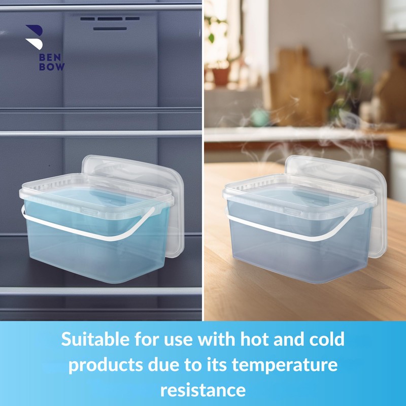 • Versatile and durable - the plastic bucket features a secure closure and a sturdy plastic handle. Perfect as a storage container, it is suitable for refrigeration, freezers (up to -20 degrees Celsius), and can also be filled with hot contents. TIP: To open the lid without damage, gently lift it and slide your fingers along the edge, rather than forcefully pulling at one point.